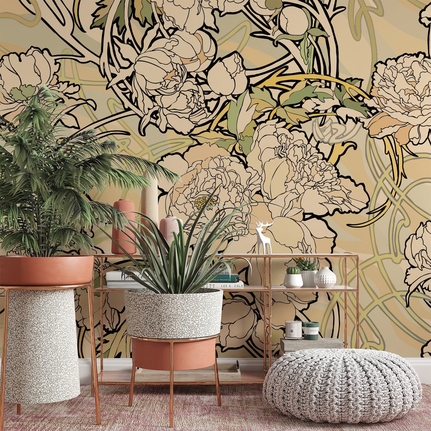 Peonies Peel and Stick Wallpaper Trending Beige Sharp Shirter